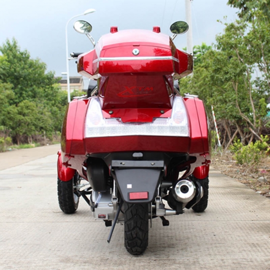 XTM-300TKB 300cc 3 колеса скутера с двигателем с водяным охлаждением. Ременной привод и три колеса дисковые тормоза. Он имеет диск передний и задний тормоз, и это очень легко работать. Ли Вы довели скутер до или это будет в первый раз. 3 колеса скутера очень просто для новичка. Кто может ездить безопасно и уверенно.